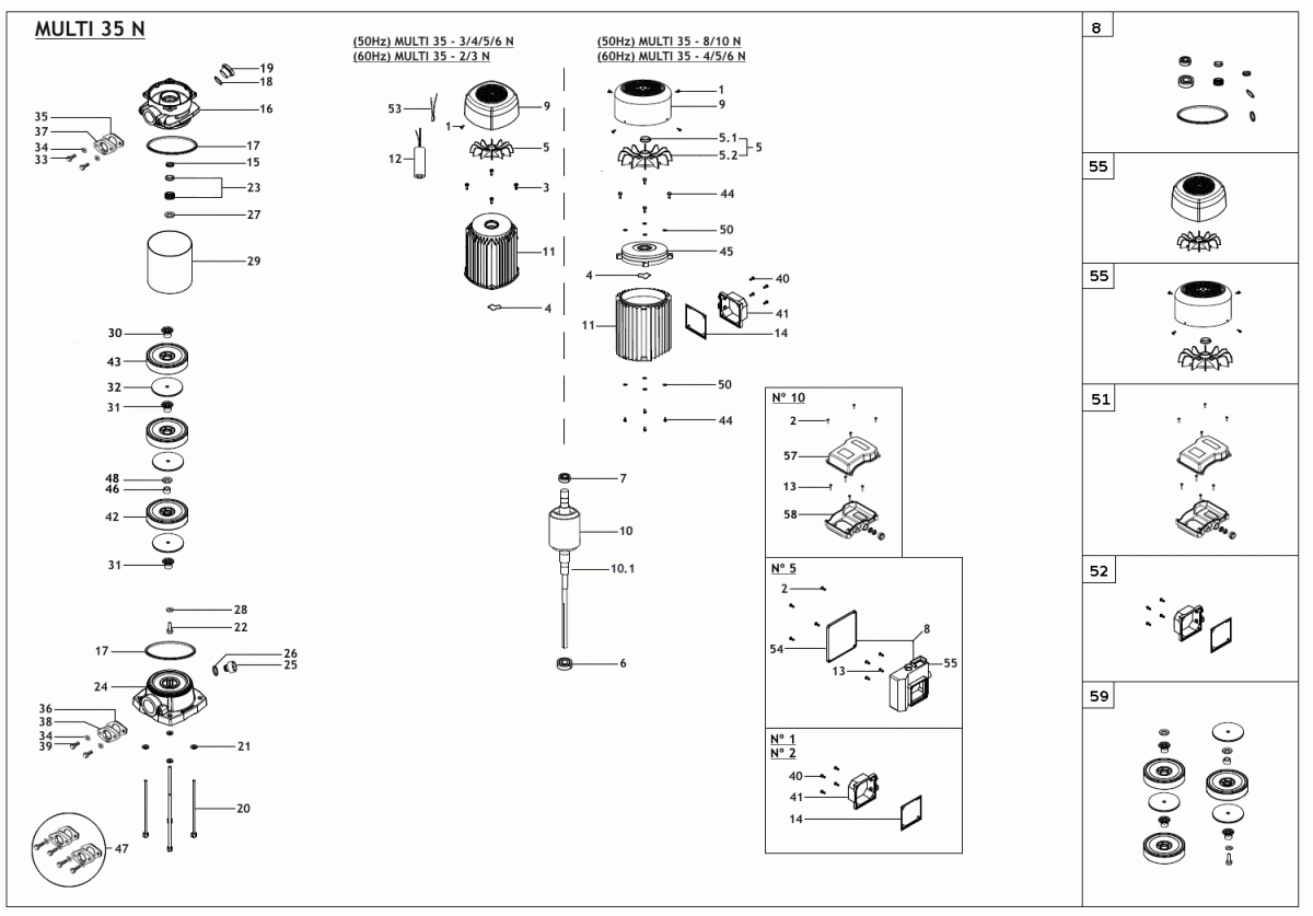 | Cuerpo envolvente | Acero inoxidable AISI 304 | Cuerpo impulsión | Fundición |