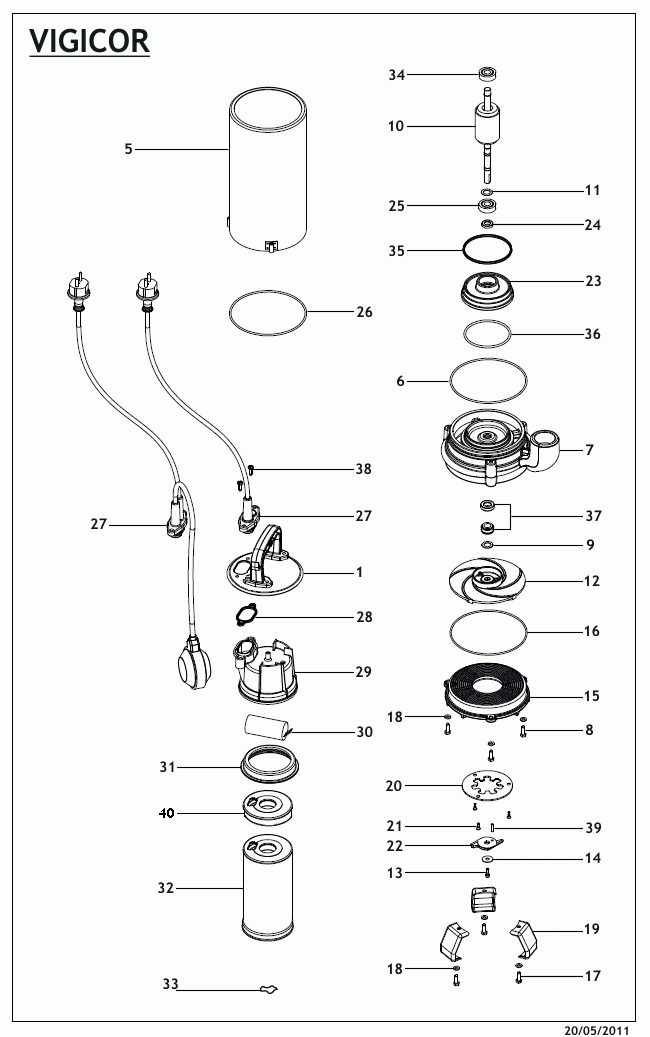 | Cuerpo envolvente | Acero inoxidable AISI 304 | Cuerpo impulsión | Fundición |